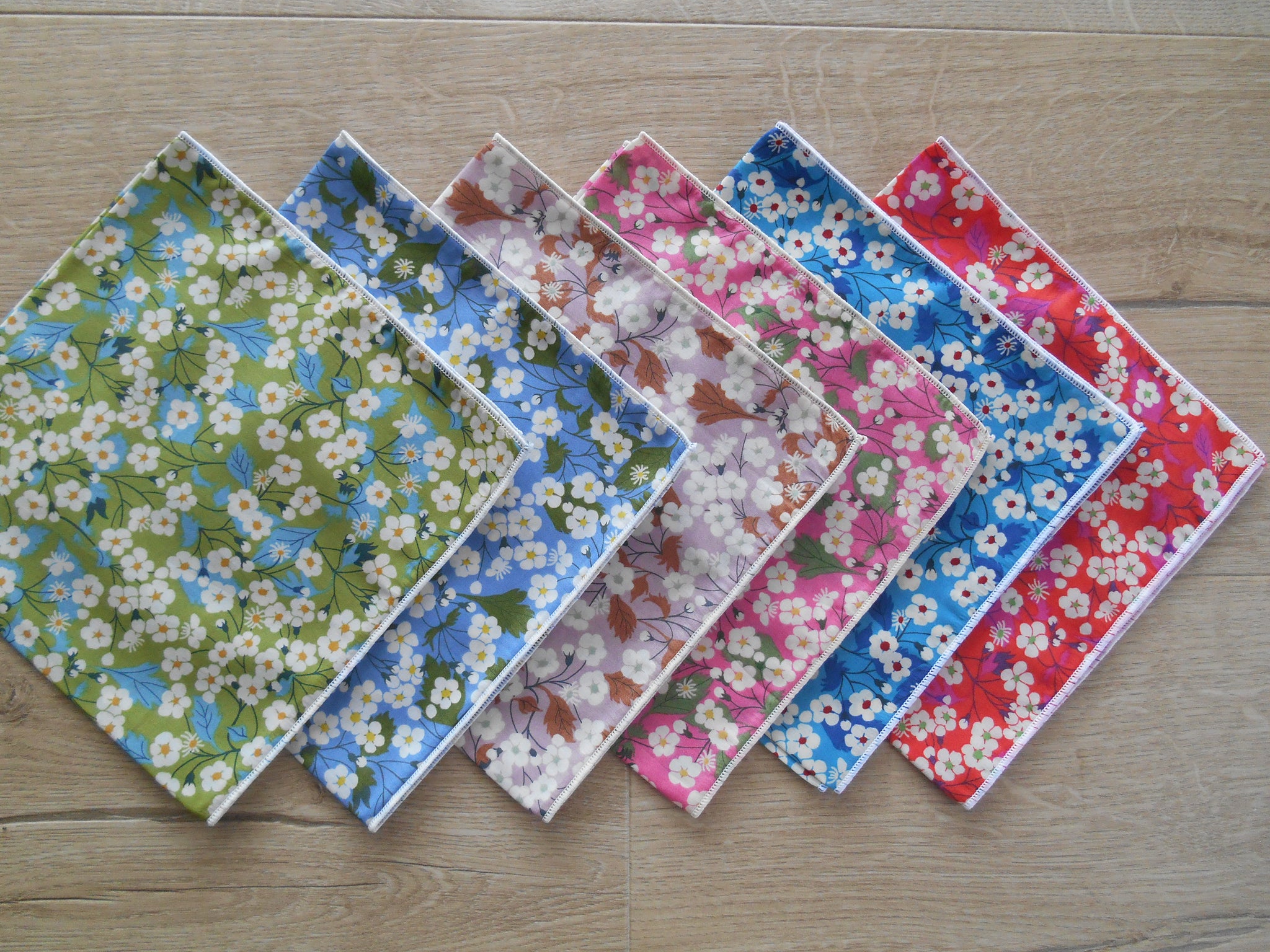 These exquisite handkerchiefs/pocket squares are a generous size measuring 31cm x 31cm (12"x12") and are made from 100% cotton Liberty of London Tana Lawn fabric. They are beautifully finished with a decorative co-ordinated rolled edge hem and are sold individually. There are six colourways to choose from in this design. Each handkerchief is meticulously handmade and comes packaged in a clear cello bag - making the perfect gift for any occasion, or treat yourself!