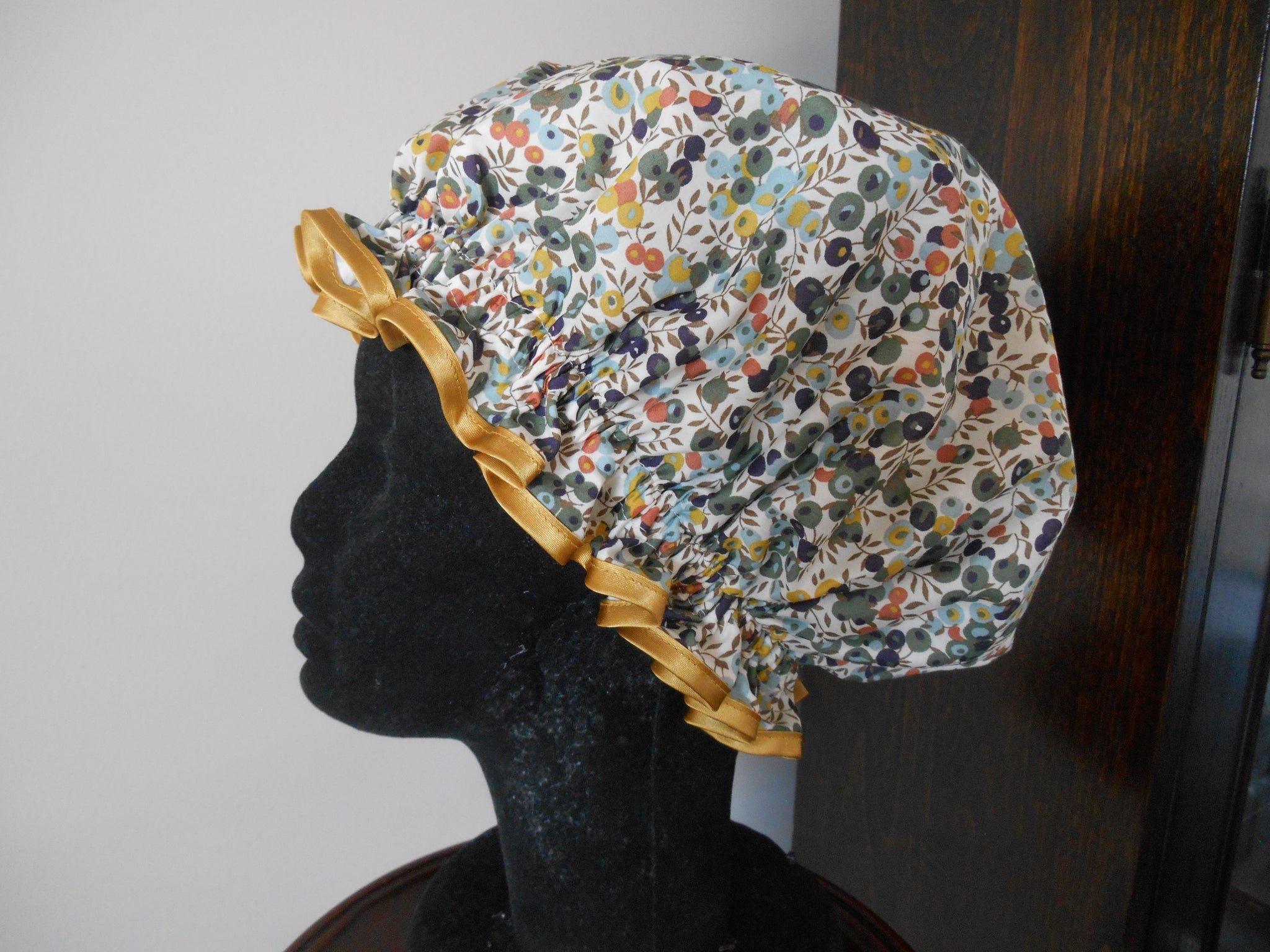 These exquisite Wiltshire Liberty shower caps are a generous size and are made from Liberty of London Tana Lawn fabric and lined with nylon waterproof lining. They are beautifully finished with a decorative co-ordinated satin trim. They have an adjustable, removable and replaceable elastic and are fully machine washable on a gentle cycle.