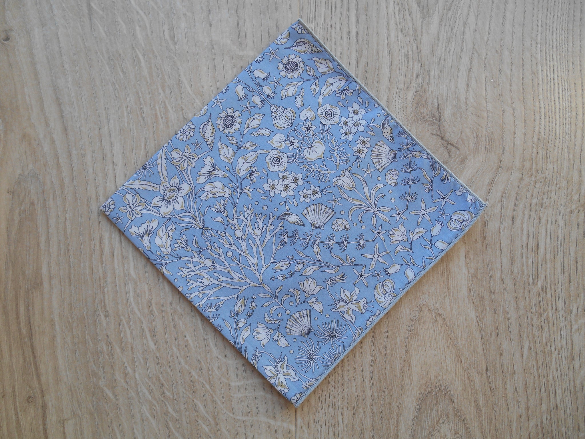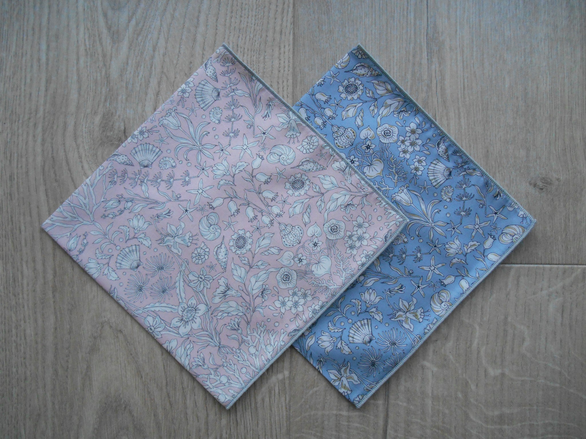 These exquisite handkerchiefs/pocket squares are a generous size measuring 31cm x 31cm (12"x12") and are made from 100% cotton Liberty of London Tana Lawn fabric. They are beautifully finished with a decorative co-ordinated rolled edge hem. There are two colourways to choose from in this listing and they are sold individually.  Each handkerchief is meticulously handmade and comes packaged in a clear cello bag - making the perfect gift for any occasion, or treat yourself!